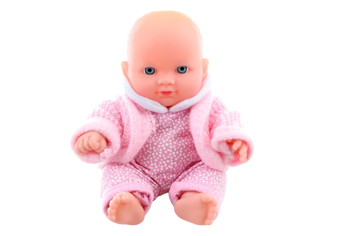 Miminko je vyrobené z kvalitního plastu, takže je snadno omyvatelné a odolné vůči každodennímu hraní. Balení v sáčku umožňuje jednoduché skladování i přenášení. K dispozici jsou 2 barvy (růžová a modrá) dodávané náhodně podle skladových zásob.