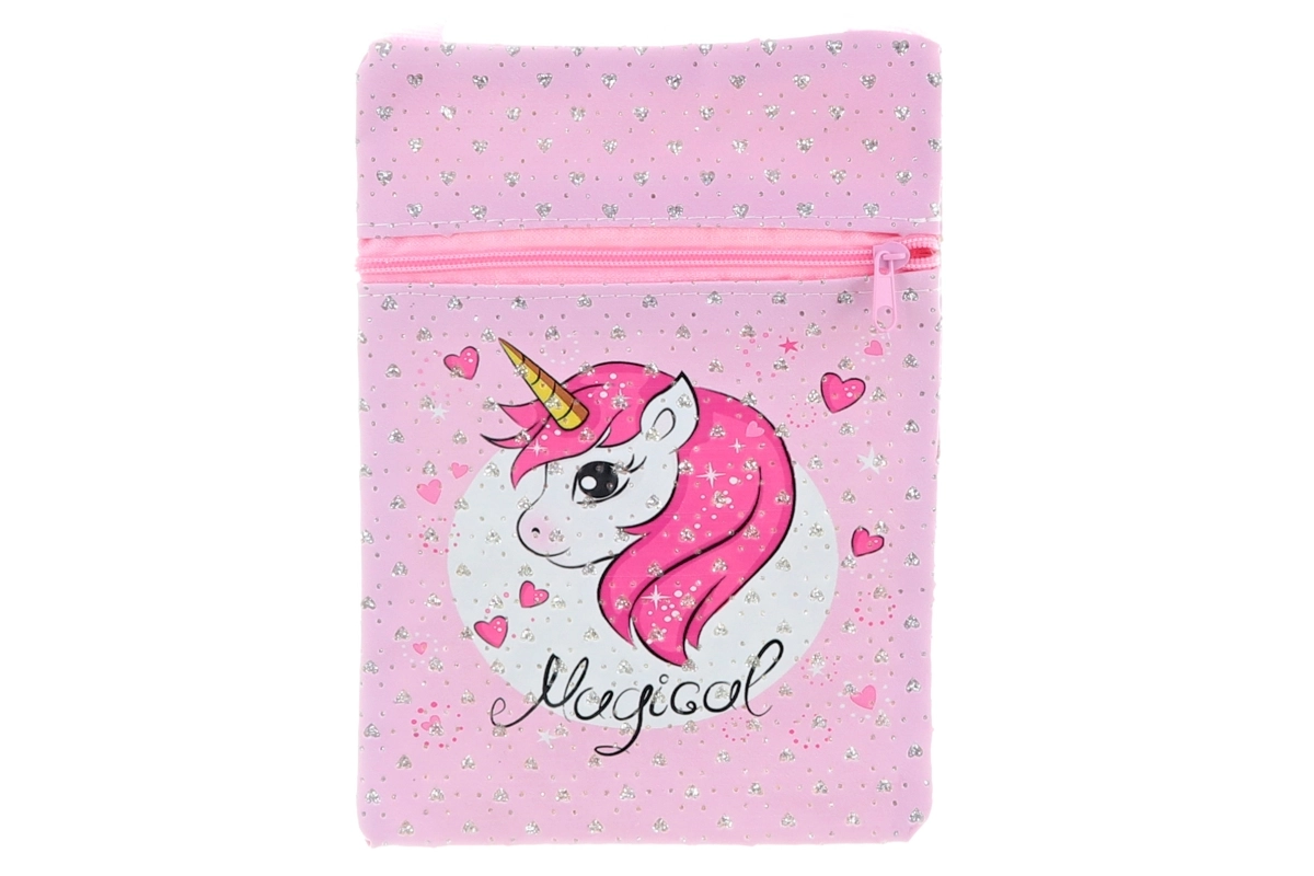 Stylová kabelka přes rameno s roztomilým motivem jednorožce potěší malé i velké milovnice fantazie. Nabízí praktickou kapsu na zip, pohodlný popruh a kompaktní rozměry ideální na drobnosti.
