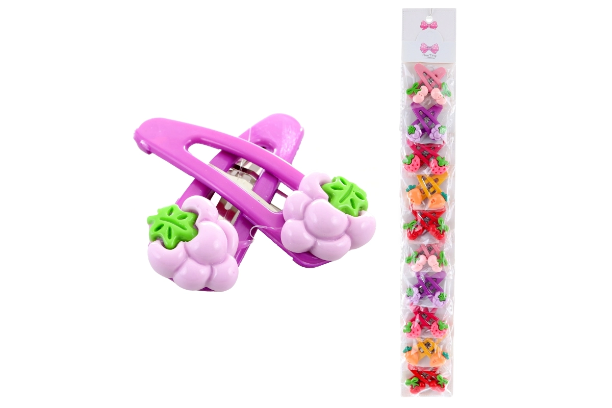 Roztomilé sponky do vlasů s ovocným motivem dodají vašemu účesu šmrnc a barvy. V každém balení najdete 2 kvalitní sponky v různých barvách, ideální pro každodenní nošení. Dodáváme pouze po balení 10 kusů (10× sada 2 ks) v praktickém sáčku.