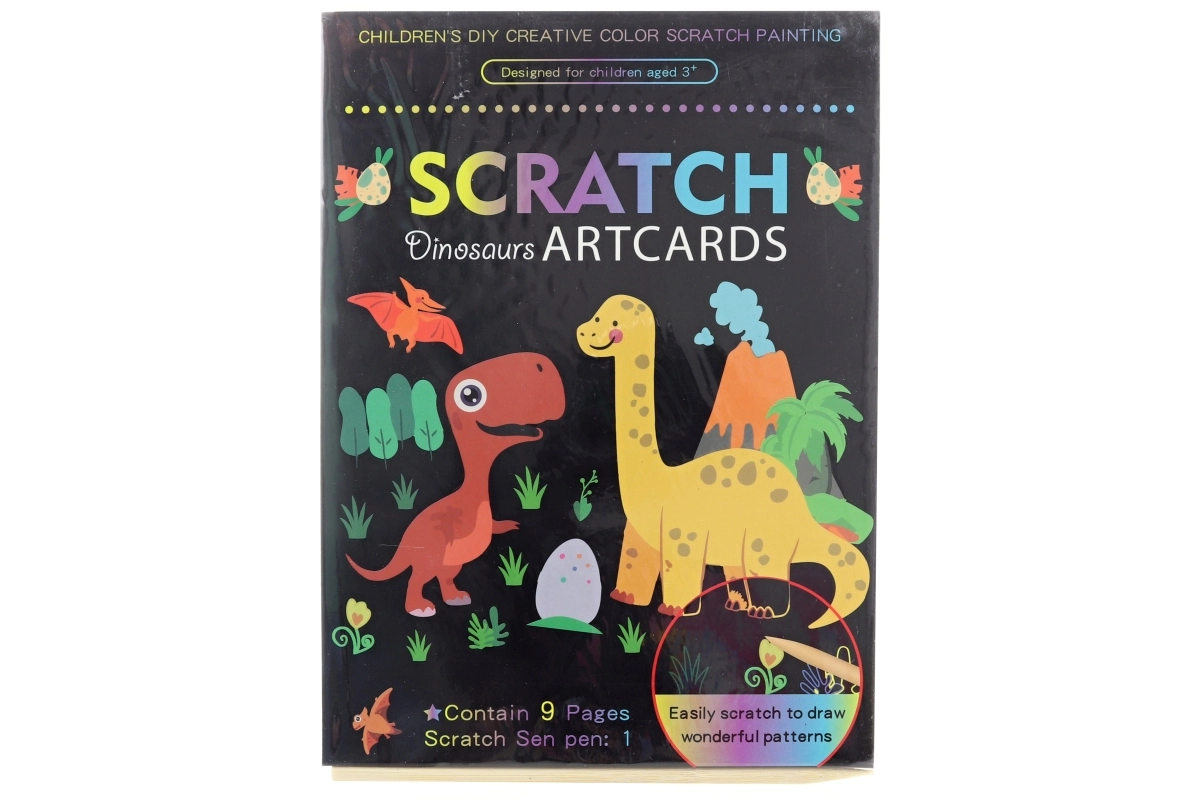 Uvolněte fantazii s kreativní sadou vyškrabovacích obrázků s motivy dinosaurů. Stačí použít přiloženou dřevěnou pomůcku a postupně odkrývat barevné vrstvy, které vytvářejí efektní ilustrace. Díky kompaktním rozměrům se sada hodí na cesty, do školy i pro domácí tvoření.