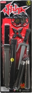 Obsah balení: samurajský meč s pouzdrem o délce cca 36 cm, dýka, nunčaky a 3 shurikeny (hvězdice). Skvělá volba pro karneval, převleky nebo domácí akční příběhy.
