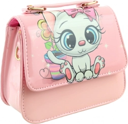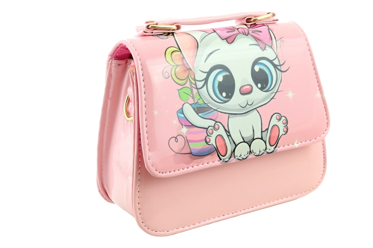 Dětská kabelka s motivem kočičky, růžová, lesklá