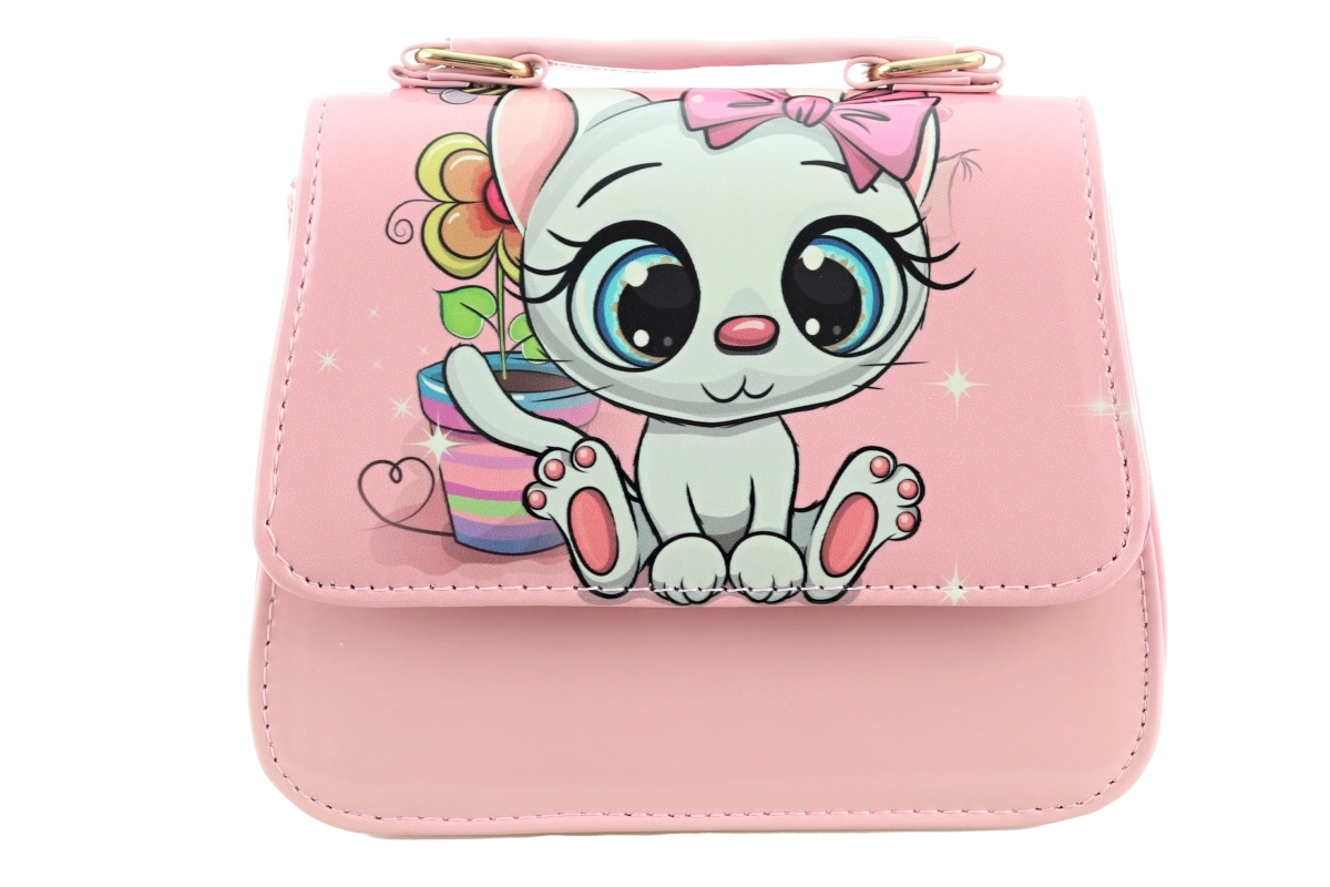 Tato růžová dětská kabelka s kočičkou je skvělým doplňkem pro každodenní nošení i sváteční chvíle. Lesklé provedení a jemné detaily vytvářejí půvabný vzhled, který si děti zamilují. Díky kompaktním rozměrům se pohodlně nosí v ruce a pojme všechny nezbytnosti.