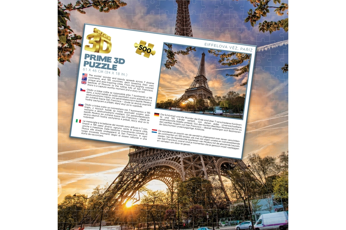 Objevte kouzlo Paříže s tímto realistickým 3D puzzle Eiffelovy věže. Sestavte ikonickou dominantu z 500 dílků a užijte si kreativní zábavu pro celou rodinu. Ideální pro děti od 6 let, podporuje trpělivost, prostorovou představivost a jemnou motoriku.