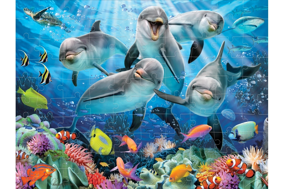 Objevte zábavu, která rozvíjí trpělivost, soustředění i jemnou motoriku. Toto 3D puzzle s motivem delfínů přináší barevnou podmořskou scénu, která díky lentikulárnímu 3D efektu působí plasticky a dynamicky. Hotový obrázek má kompaktní rozměr 31 × 23 cm, takže se skvěle hodí na vystavení v dětském pokoji.