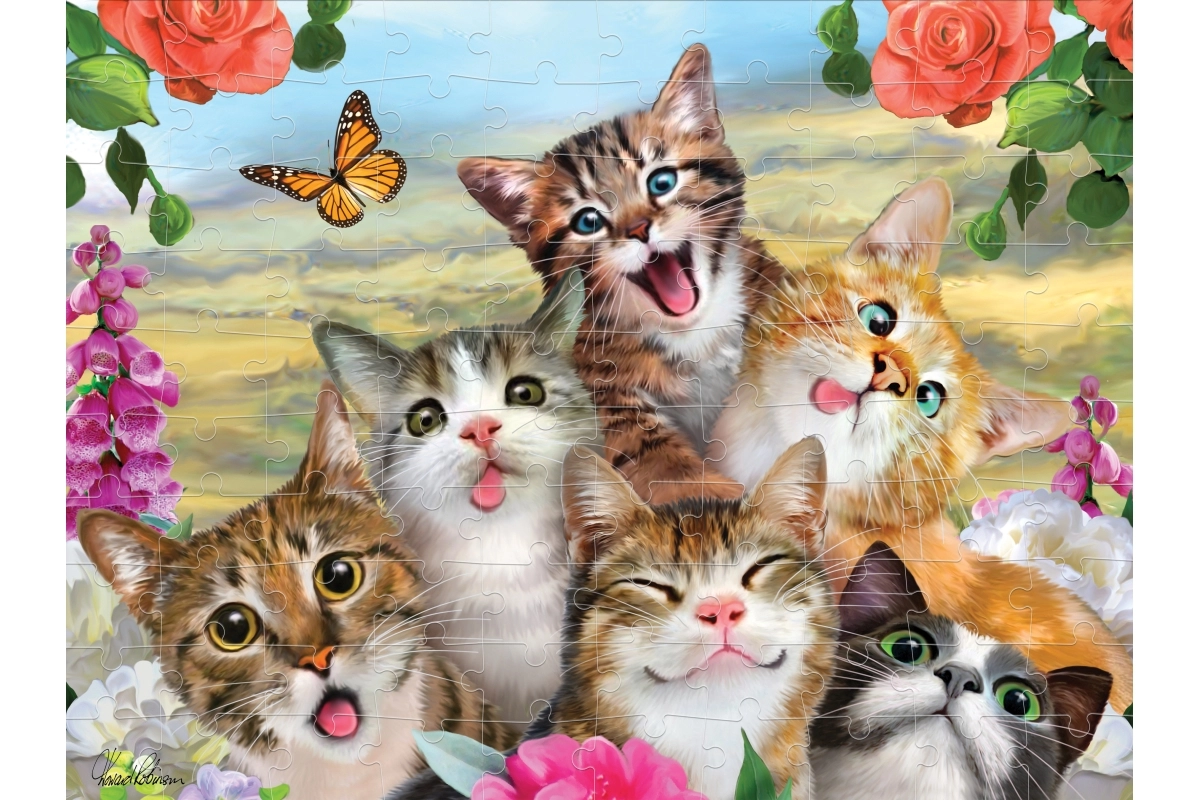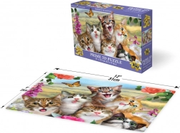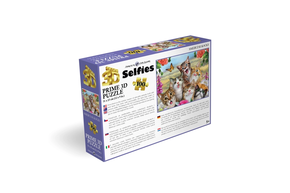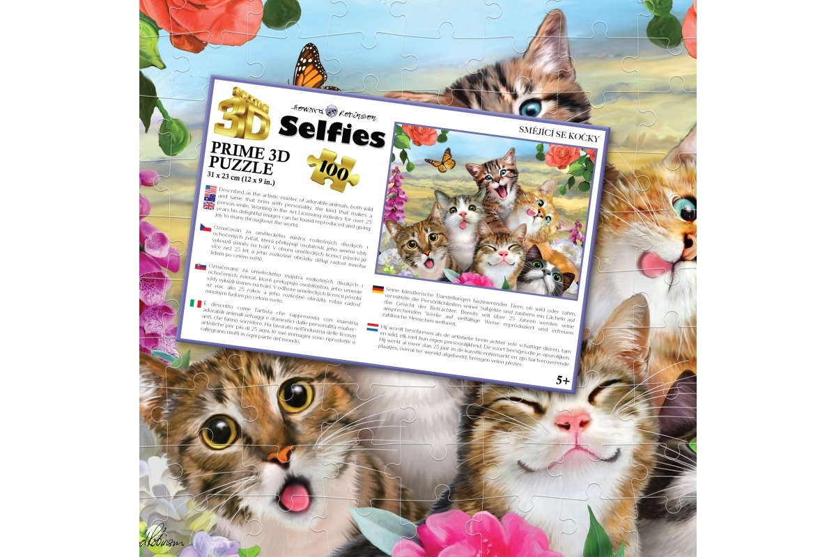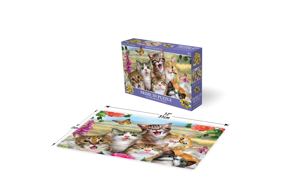 Objevte zábavné 3D puzzle s motivem smějících se koček, které potěší malé i velké skládače. Balení obsahuje 100 dílků, doporučeno pro děti od 5 let. Po složení vznikne kvalitní obraz o rozměru 31 × 23 cm.