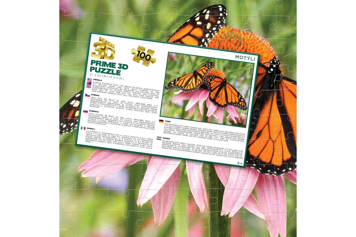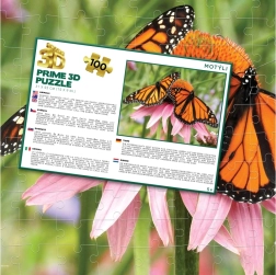Toto 3D puzzle s nádhernými monarchovými motýly přináší poutavý vizuální efekt díky lentikulární technologii, která vytvoří při pohybu realistický prostorový dojem. Se 100 dílky je skvělé pro začínající i mírně pokročilé skládače a nabízí příjemnou výzvu i zábavu.