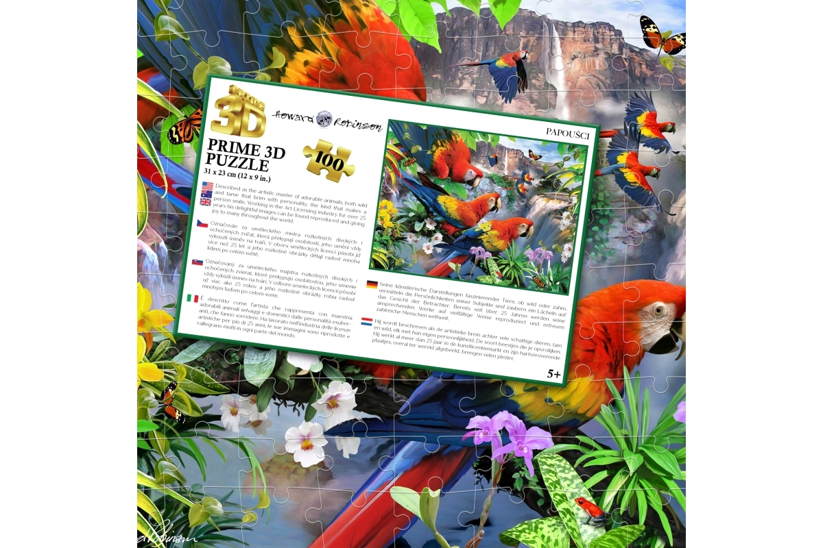 Objevte zábavné a barevné 3D puzzle s motivem papoušků, které rozvíjí jemnou motoriku, trpělivost a prostorovou představivost. Sada obsahuje 100 dílků a je ideální pro děti od 5 let.