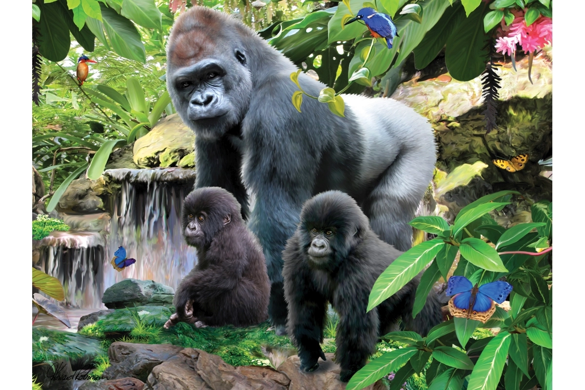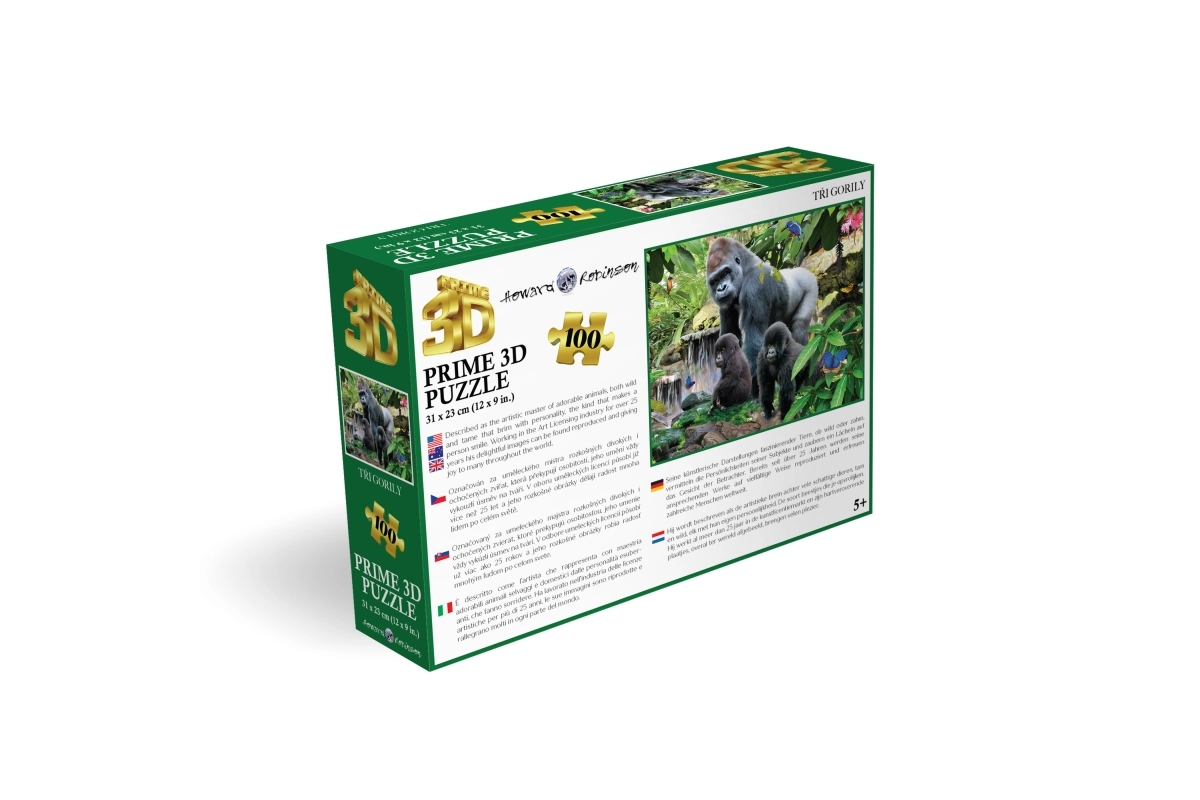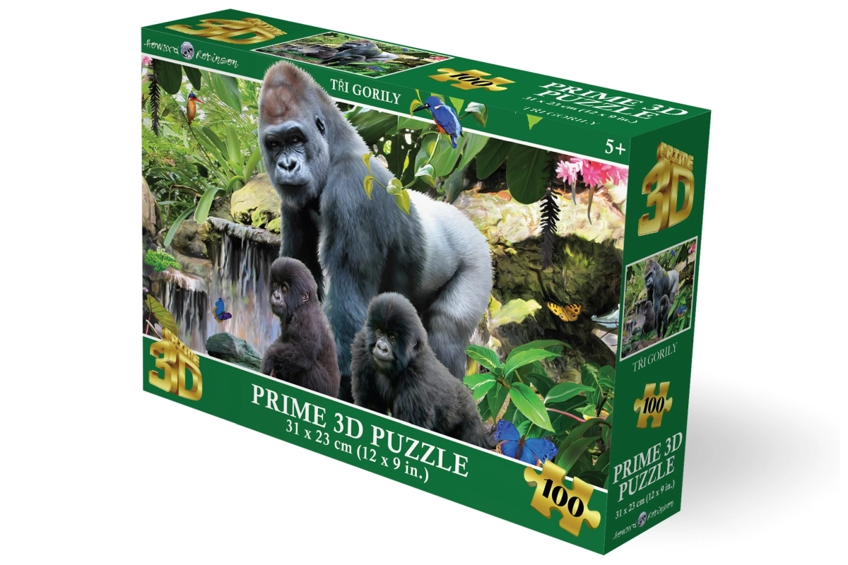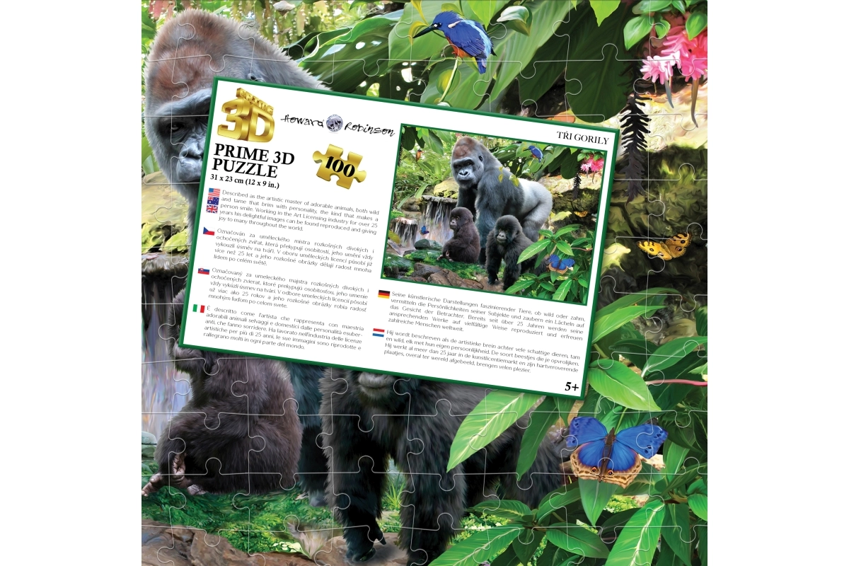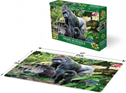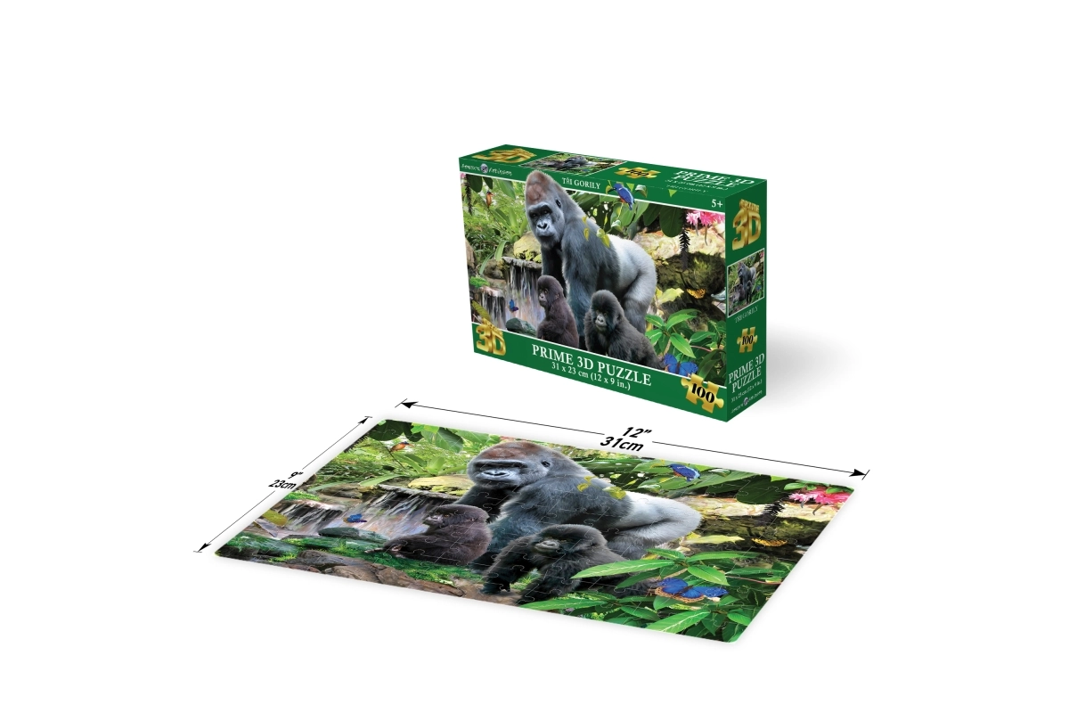 Objevte svět divoké přírody s fascinujícím 3D puzzle s rodinou goril. Díky lentikulárnímu efektu vystupuje obrázek z plochy a nabízí poutavý vizuální zážitek, který potěší děti i dospělé. Hotový formát 31 × 23 cm se skvěle hodí jako dekorace do dětského pokoje.