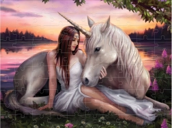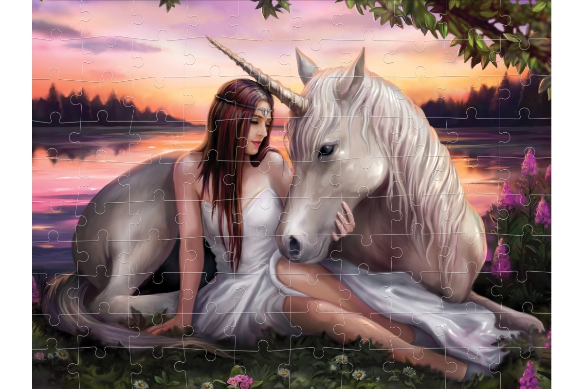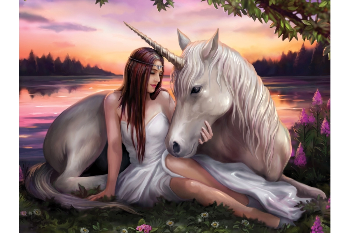 • Kouzelný motiv dívky a jednorožce pro radost ze skládání.