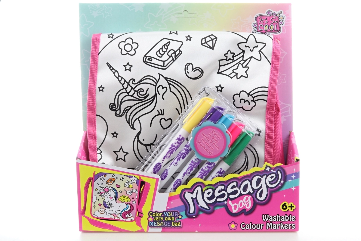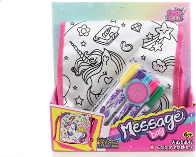 Kreativní malovací kabelka s roztomilým motivem jednorožce potěší každé malé tvořivé dítě. Součástí je nastavitelný růžový popruh a sada 5 barev pro okamžité vybarvování. Kabelka má praktické zapínání na suchý zip a je ideální na drobnosti i na cesty. Podporuje kreativitu, snadné používání a zábavu pro děti 3+.