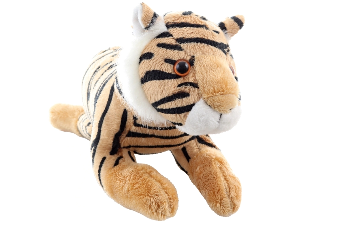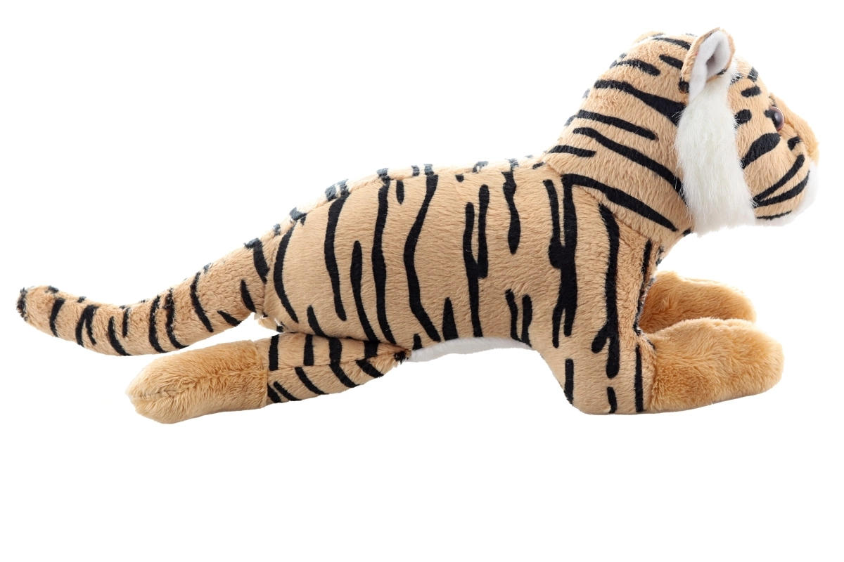 Věrné tygří pruhování, jemné výšivky a milý výraz podporují fantazii a rozvoj smyslů během hry.