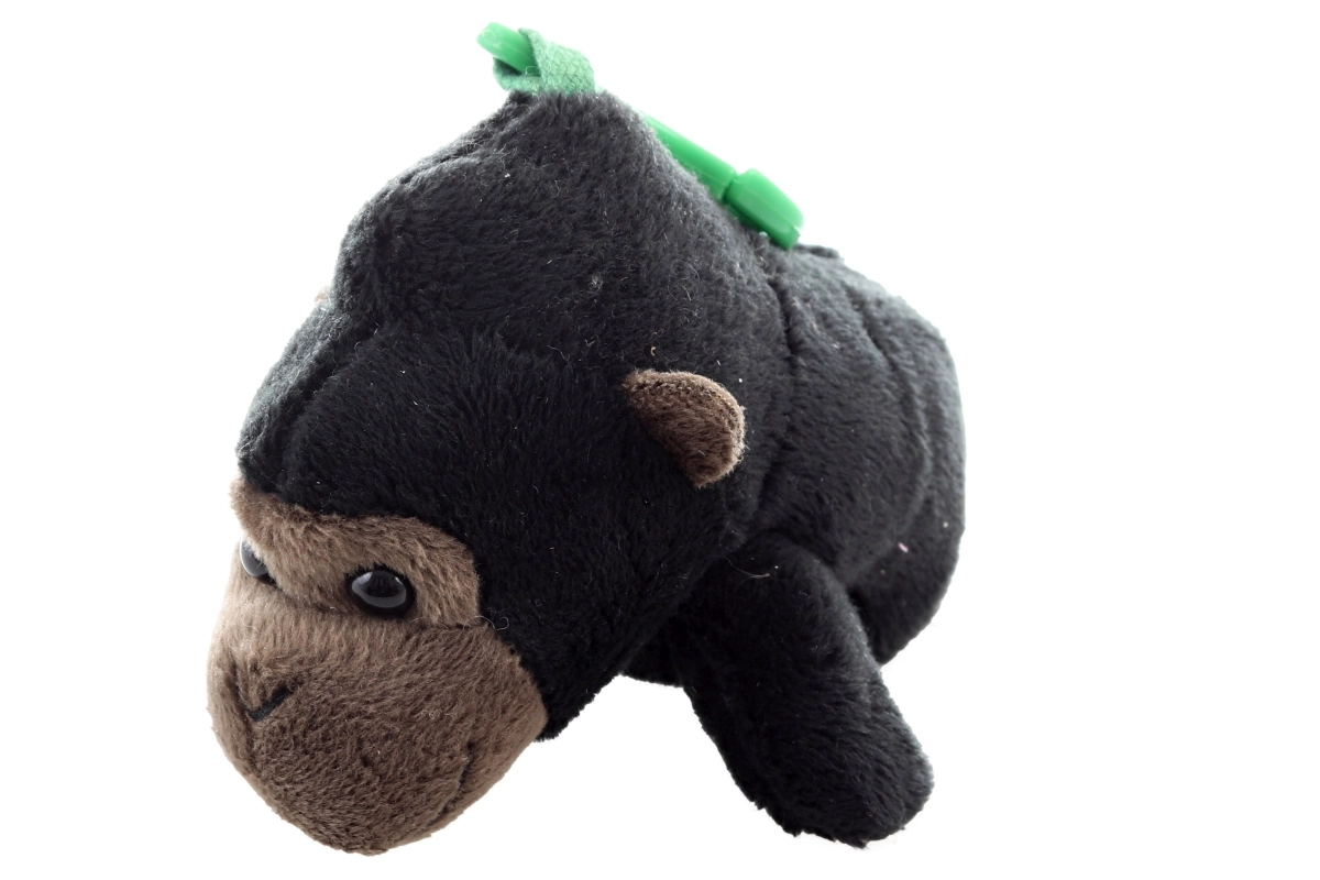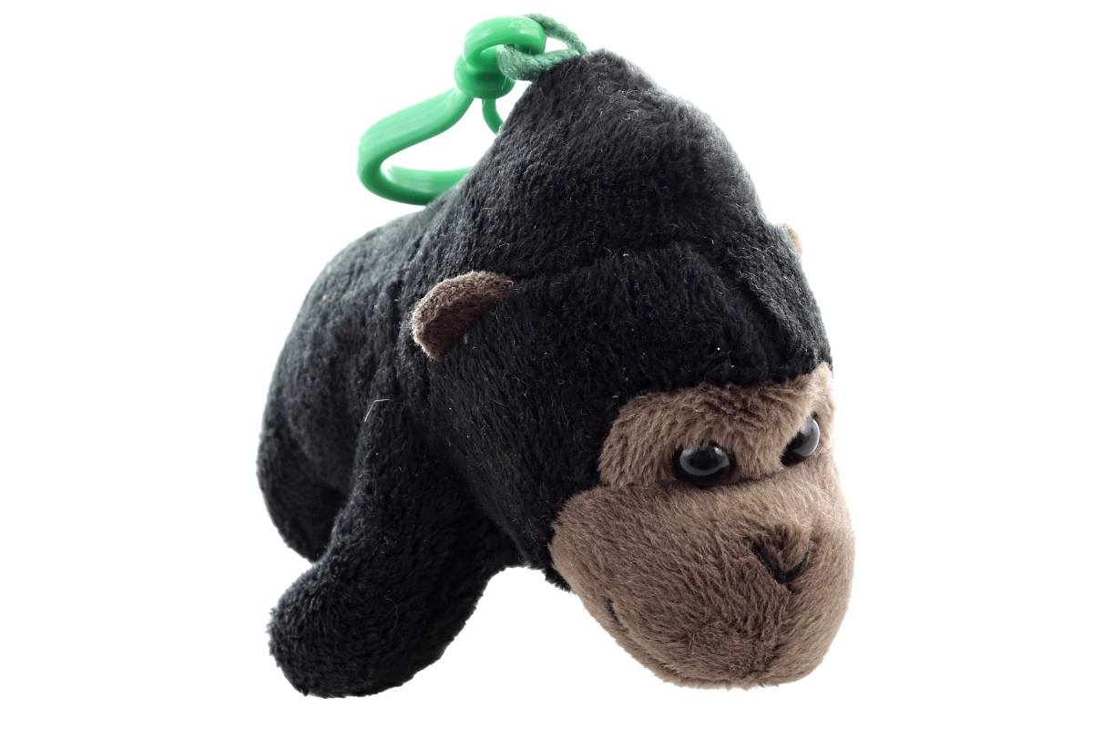 Tato stylová plyšová gorila je skvělým doplňkem pro každodenní nošení. Jemný černý chlup s hnědým obličejem a výraznými plastovými očima působí roztomile a láká k pohlazení. Zelený klip umožňuje rychlé a pevné připnutí na klíče, aktovku nebo zip batohu.