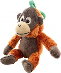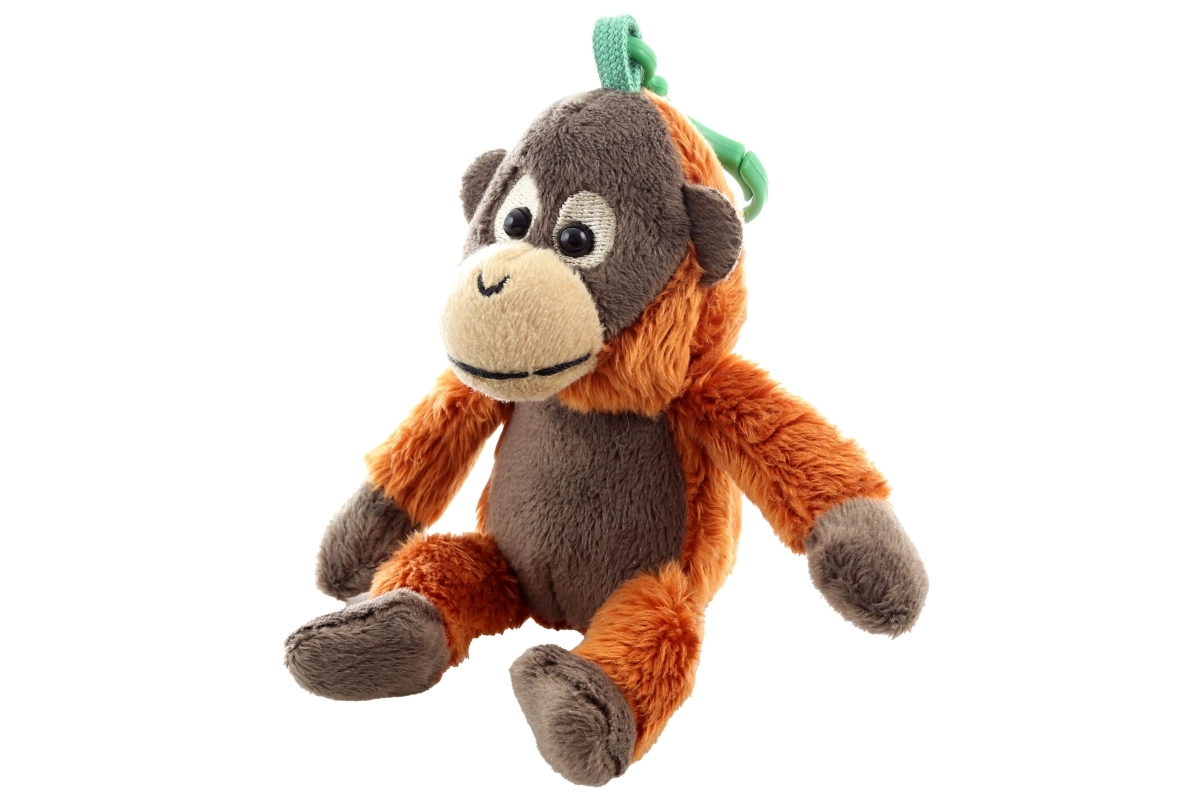 Zelený klip umožní rychle připnout orangutana na batoh, kočárek či klíče – vždy po ruce a připraven k hraní.