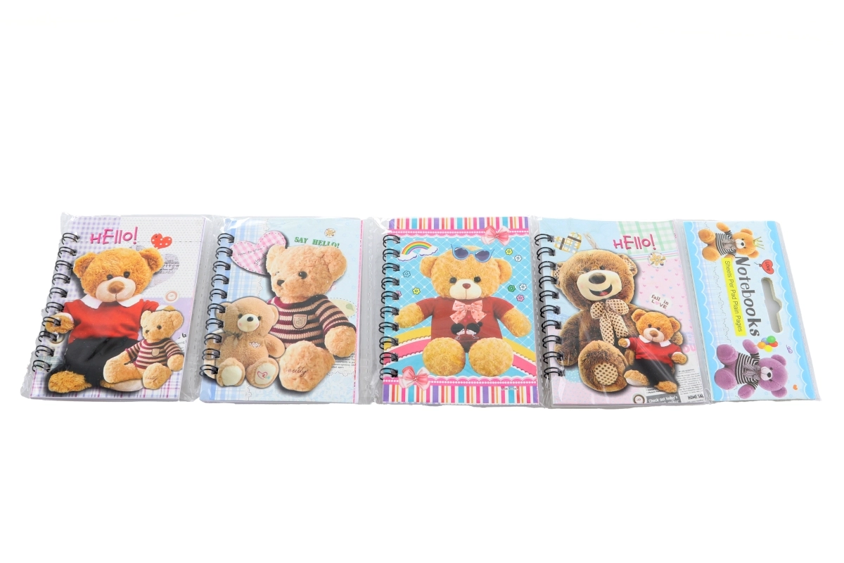 Každý zápisník má originální obálku s medvídkem „Hello“, která zpříjemní každé zapisování a dodá poznámkám osobitý styl.