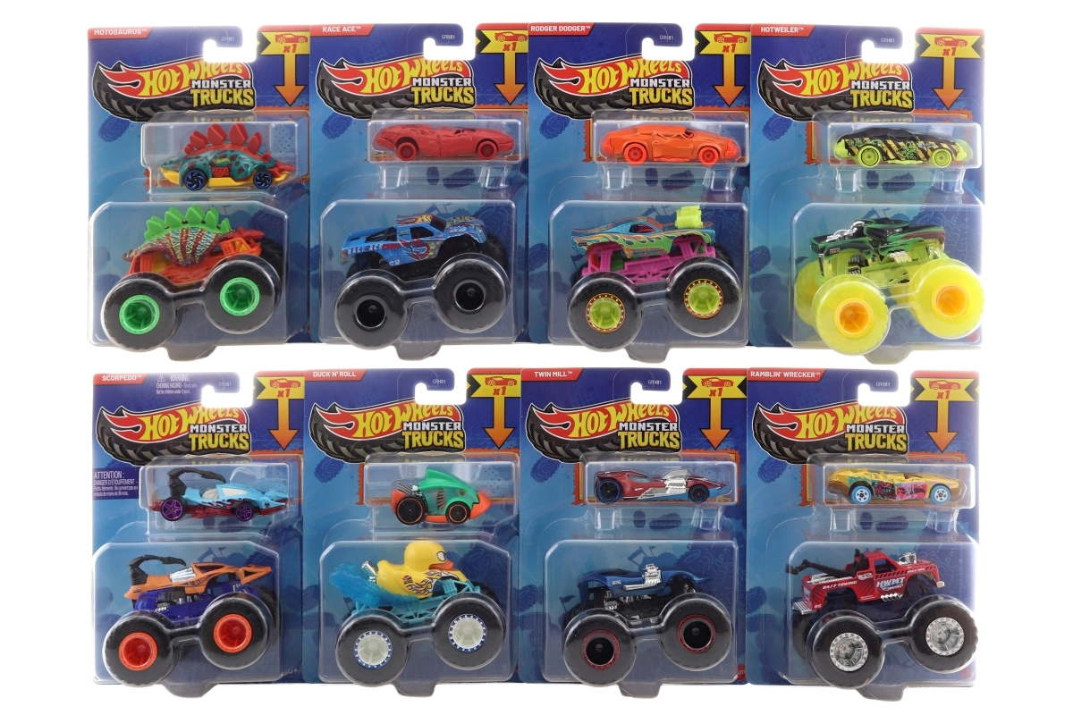 - 1× Monster Truck 1:64, 1× angličák Hot Wheels 1:64