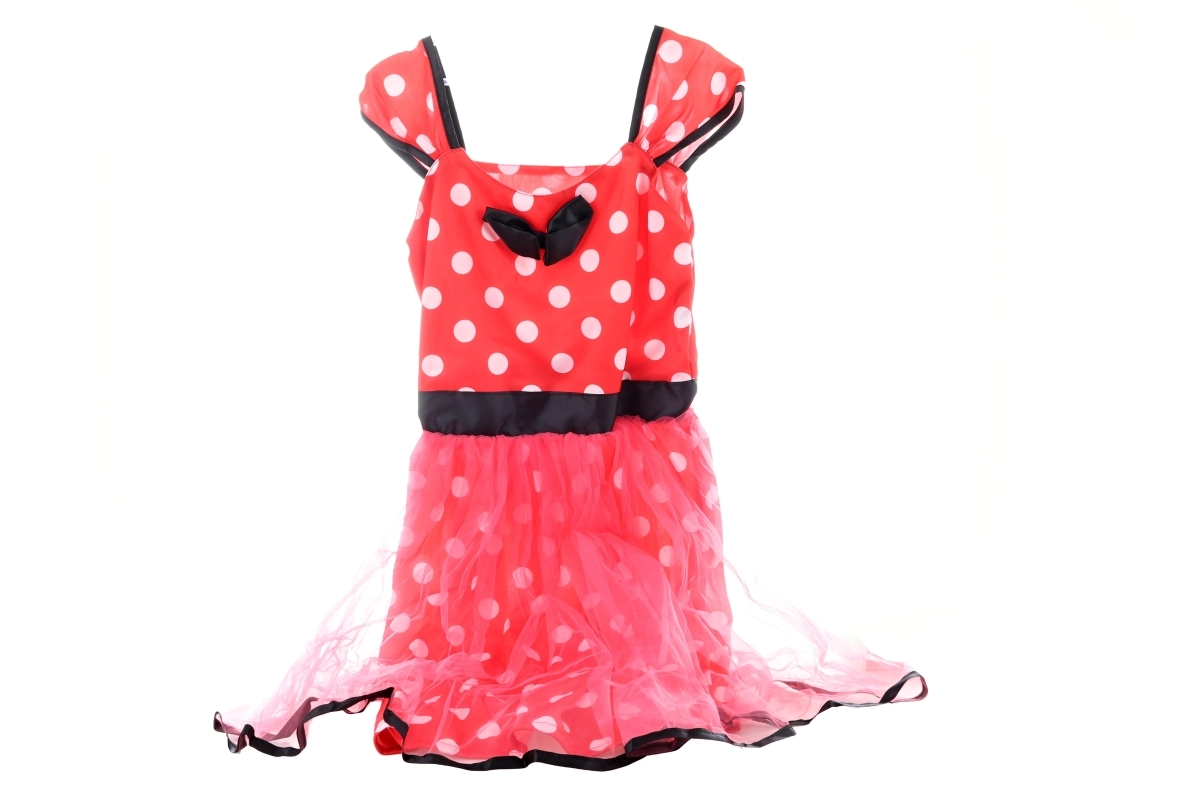 Okouzlující kostýmové šaty inspirované myškou Minnie potěší každou malou parádnici. Kombinují výraznou červenou s bílými puntíky, jemné černé lemování a mašličku u výstřihu. Lehký, prodyšný materiál a vícevrstvá tylová sukně dodávají šatům objem i pohádkový vzhled.