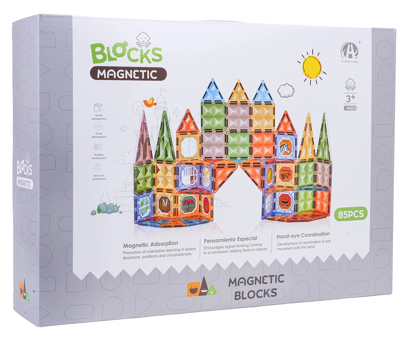 Součástí balení jsou samolepky a šablony, které oživí každý výtvor. Stavebnice podněcuje kreativitu, učení hrou a podporuje rozvoj prostorových dovedností. Díky jasným barvám a průsvitnému provedení je stavění lákavé a přehledné i při práci se světlem.