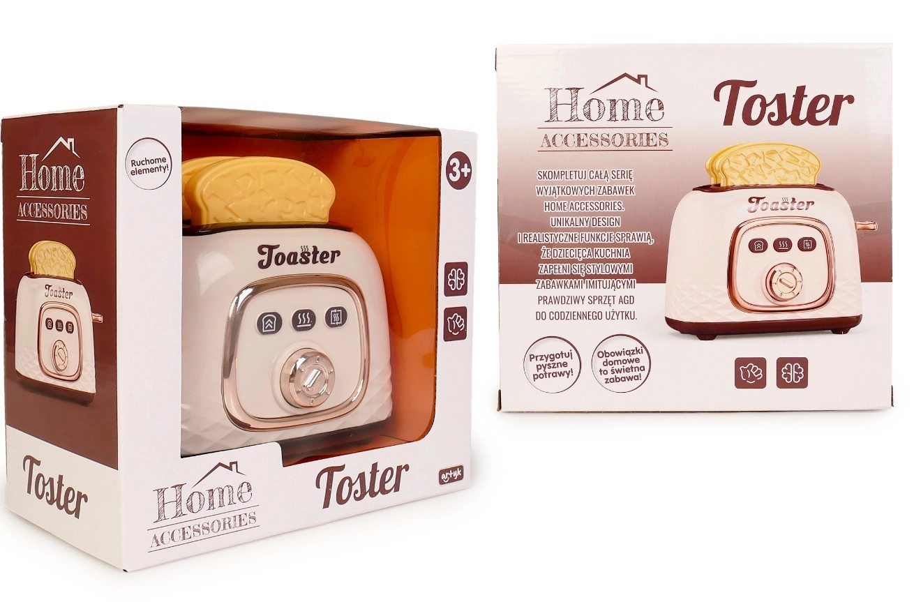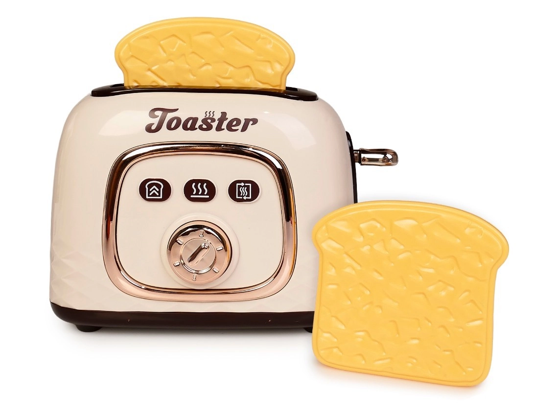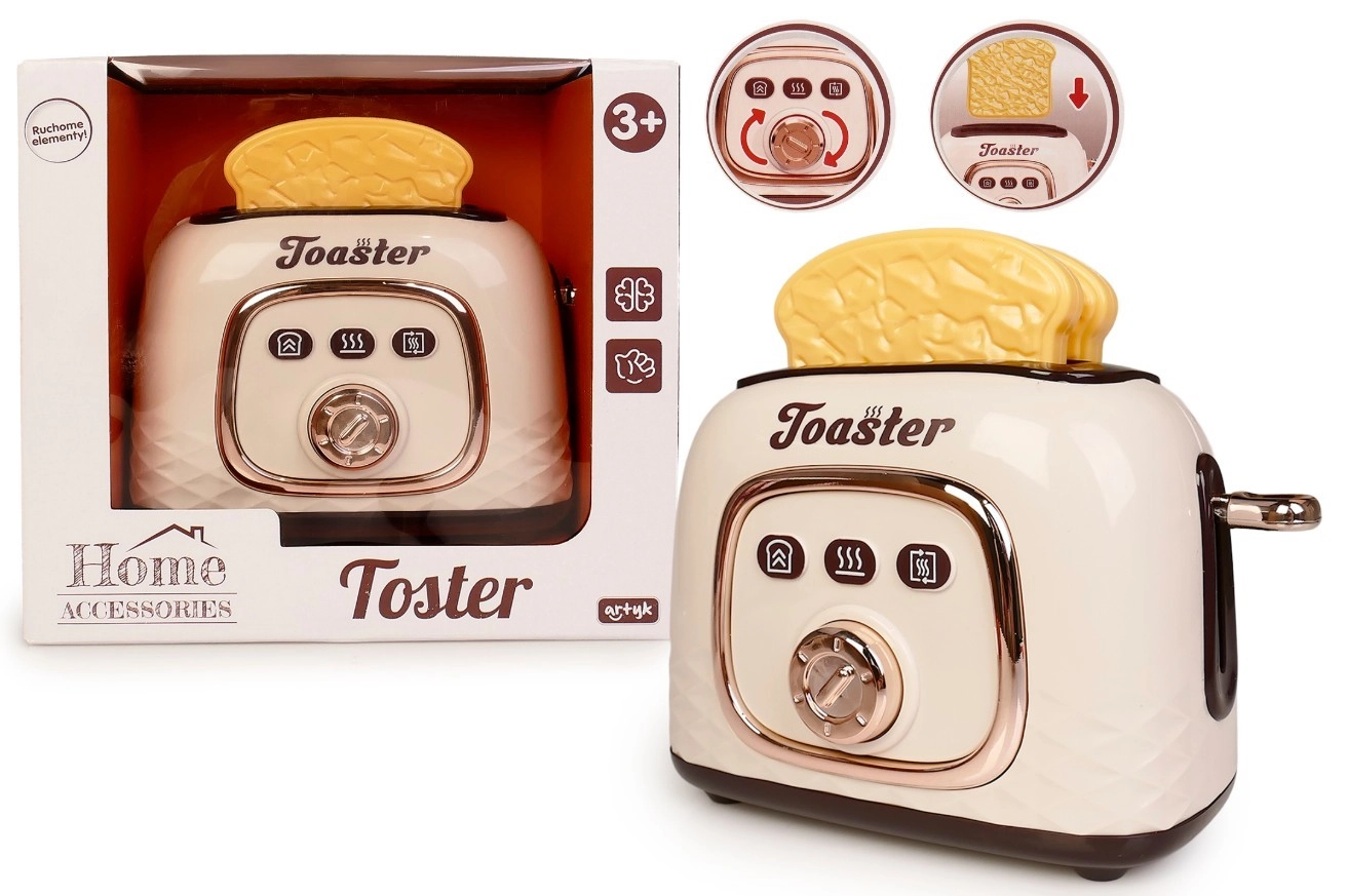 Dětský toustovač s topinkami je ideální doplněk do každé dětské kuchyňky. Díky jednoduchému ovládání si děti užijí realistickou přípravu snídaně – stisknou boční tlačítko, toasty se spustí a po chvilce samy vyskočí.