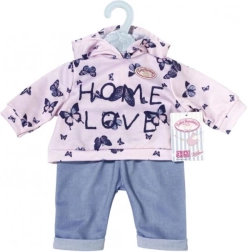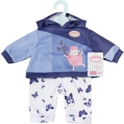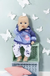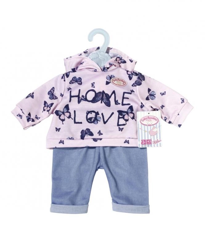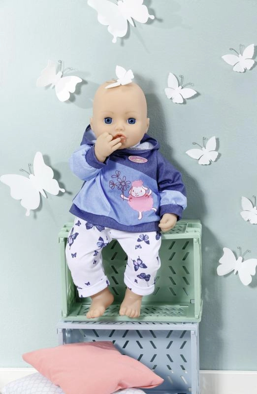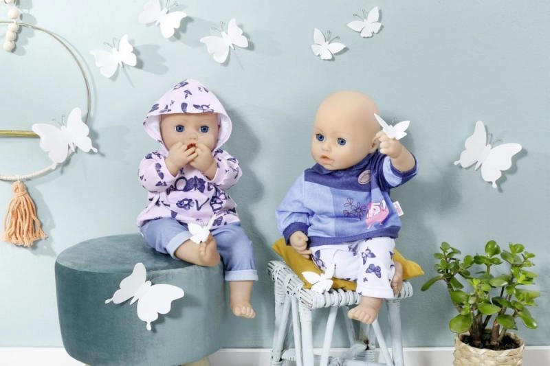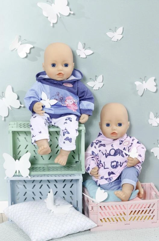 Dopřejte své panence BABY ANNABELL útulný domácí outfit. Set nabízí dva různé vzhledy: růžovou mikinu s kapucí s něžnými motýlky a kalhoty v džínovém stylu, nebo modrou mikinu s kapucí s roztomilým obrázkem a pohodlné sportovní kalhoty. Materiály jsou měkké a příjemné na dotek, ideální pro každodenní hraní.