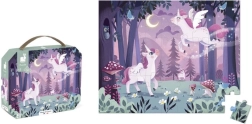 Objevte kouzlo skládání s půvabným motivem jednorožců. Toto dětské puzzle v odolném kartonovém kufříku je skvělou volbou na doma, do školky i na cestování. Díky přiložené plakátové předloze si děti snadno ověří správné umístění dílků a užijí si radost z hotového obrázku.