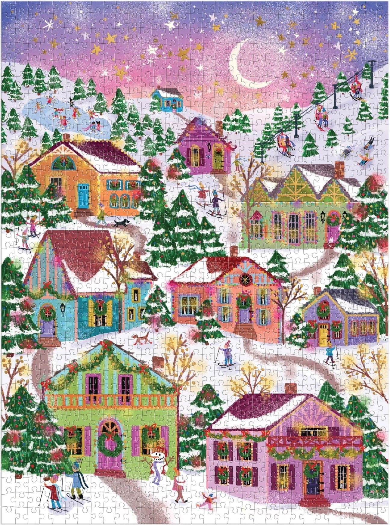 Toto stylové puzzle s motivem zasněžené vesničky je ideální pro zimní večery i jako dárek pro milovníky skládání. Metalický efekt vytváří dojem zlata, stříbra a dalších lesklých kovů, díky čemuž hotový obraz opravdu vynikne.
