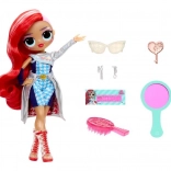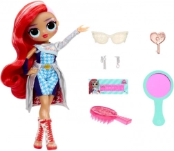 Kloubová panenka s dlouhými vlasy, výraznými brýlemi a stříbrnými kousky garderoby pro kreativní hraní a focení.