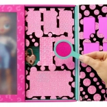 Lušti kódy, odemykej přihrádky a postupně objevuj outfit, boty, šperky i tajnou identitu panenky.