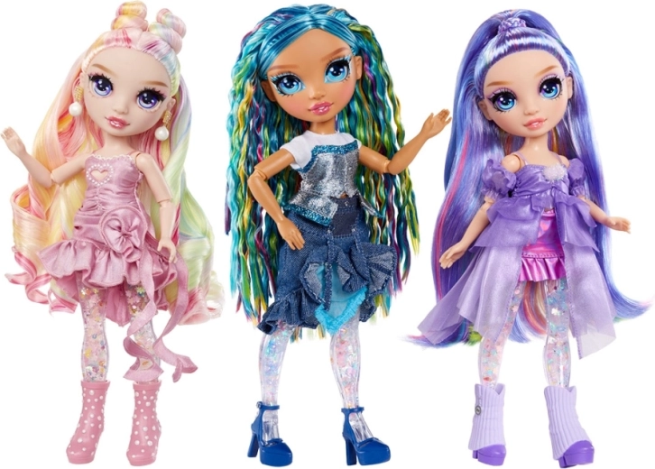 Součástí je také roztomilý kouzelný mazlíček s křídly a rohem, hřeben a kompletní outfit. Děti mohou sbírat postavy z této série – Iris (Duhová), Bella (Růžová), Skyler (Modrá) a Violet (Fialová) – a nechat se inspirovat novými epizodami seriálu Rainbow High na YouTube nebo Netflixu.