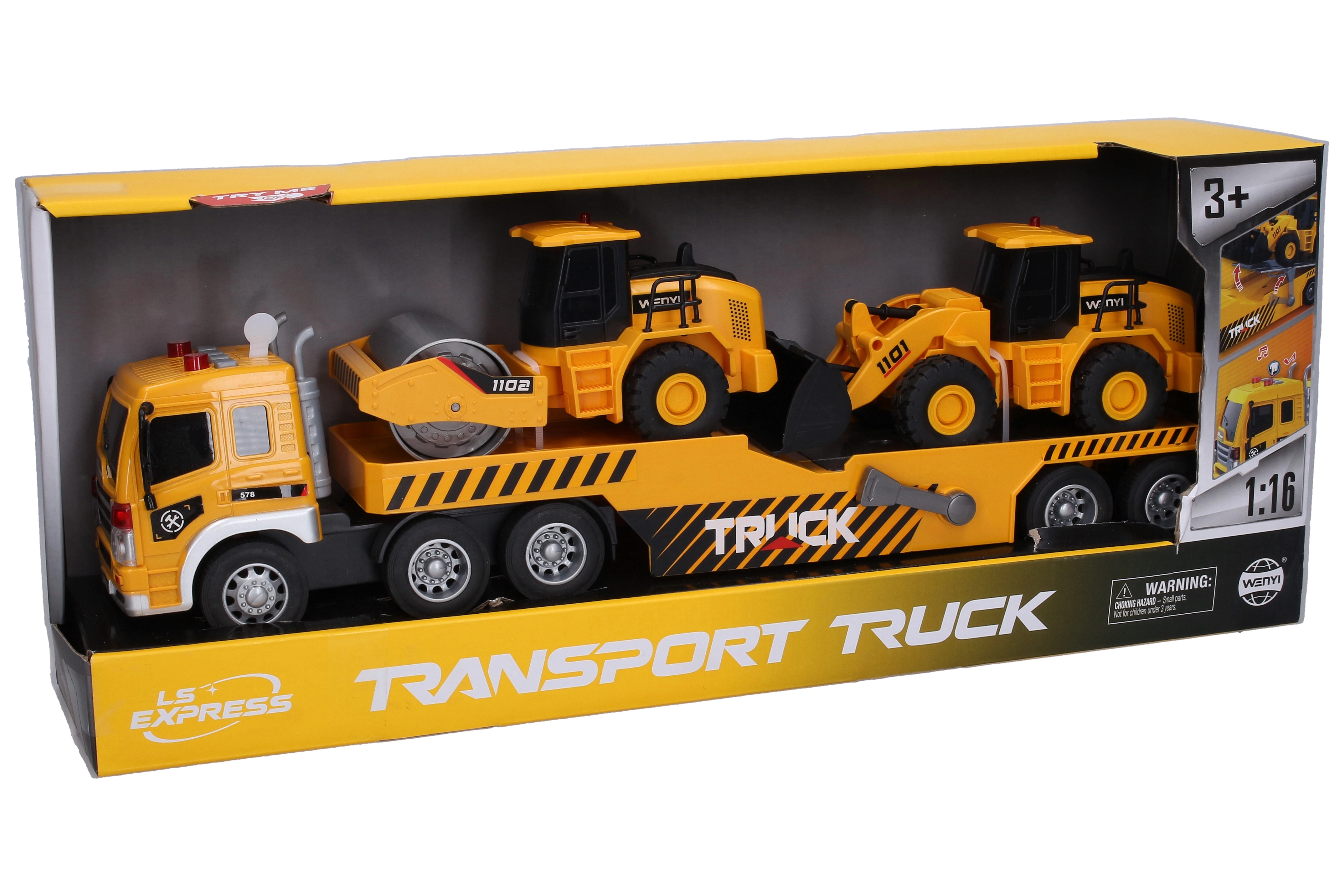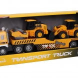 Velký auto tahač o délce 48 cm se setrvačníkem přiváží dva stavební stroje a nabízí světelné a zvukové efekty pro ještě větší zábavu. Aktivace probíhá pohodlně tlačítky na střeše, nechybí ani funkční zadní plošina ovládaná páčkou. V balení jsou baterie, takže můžete hned vyrazit na stavbu.