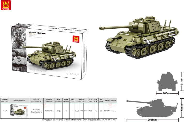 Model vyniká stabilní a odolnou konstrukcí, takže se hodí jak na vystavení, tak na hraní. Sada je ideální jako originální dárek pro děti od 6 let, které milují stavebnice a vojenské vozidla.