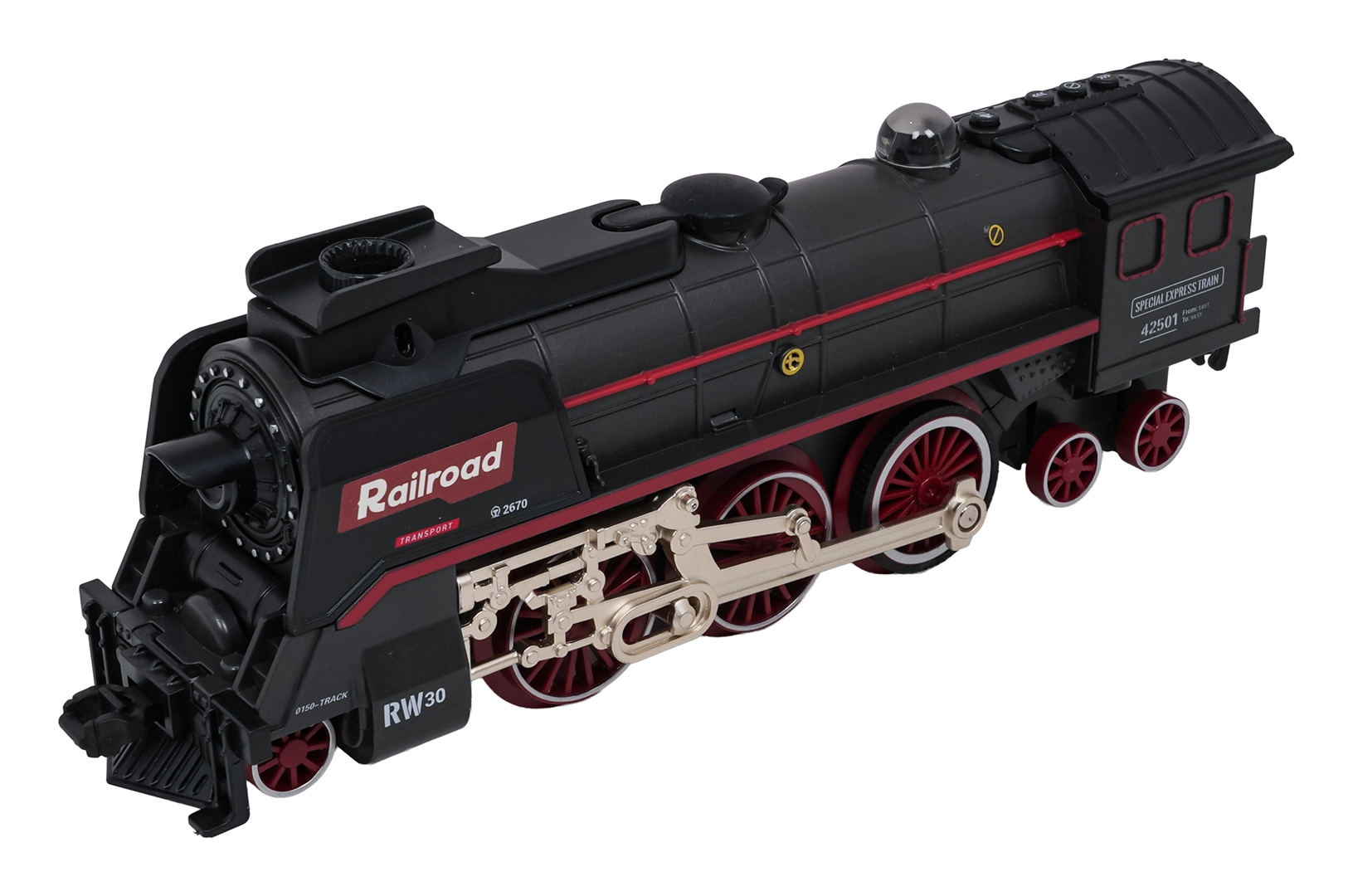 Lokomotiva při jízdě vypouští kouř z komína i boků, svítí předním reflektorem a doprovází ji autentické zvuky. Kouř aktivujete doplněním vody pomocí přiložené pipetky.