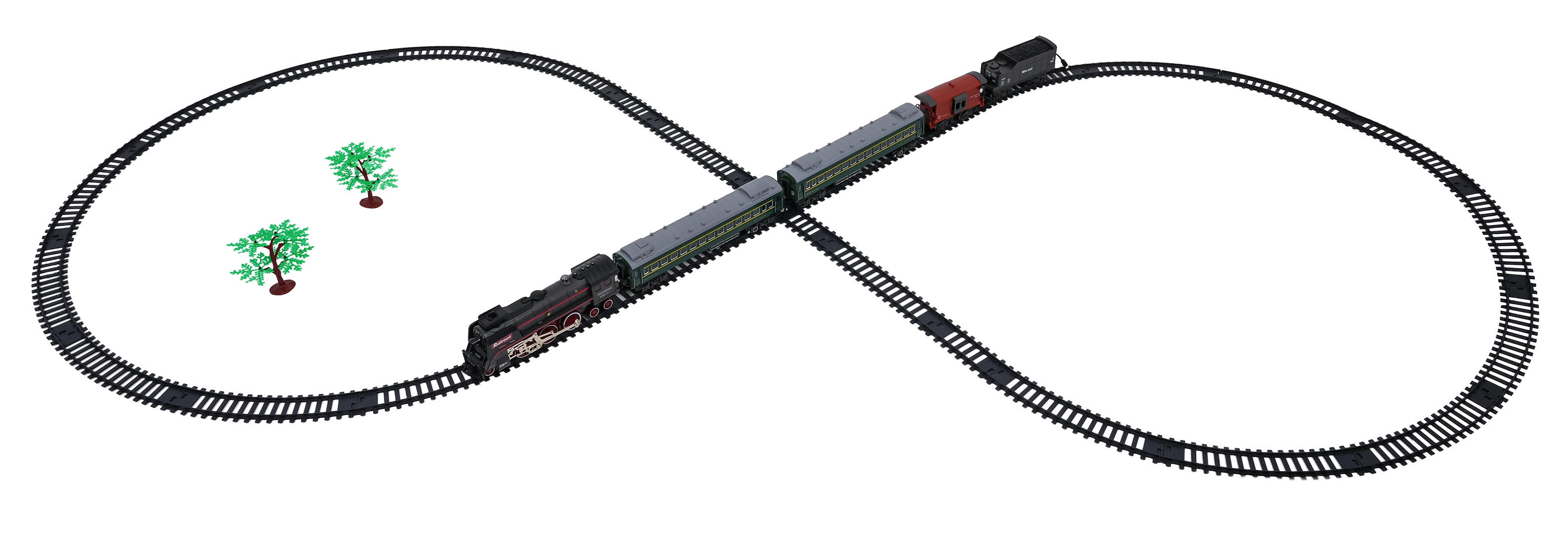 Pevné plastové koleje se jednoduše zacvaknou do rozšířeného osmičkového okruhu. Dlouhá trať nabízí plynulou jízdu a spoustu zábavy.
