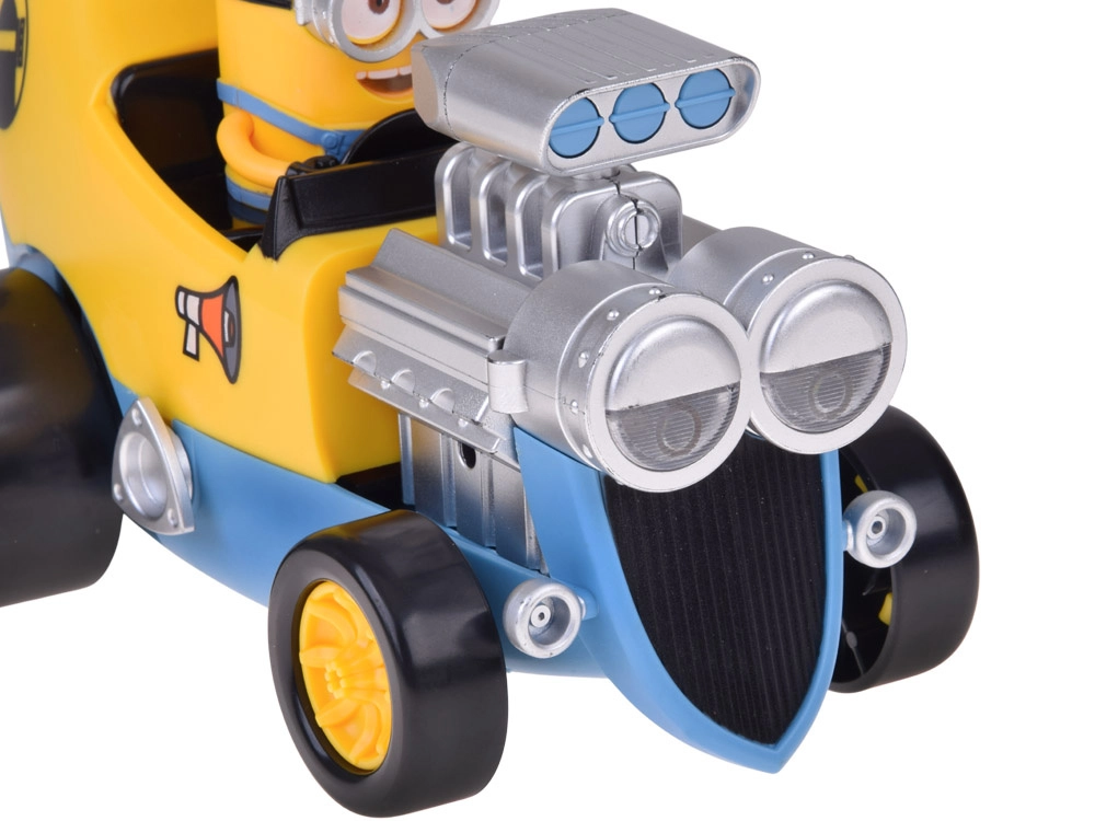 Rozjeďte zábavu s banánovým hot-rodem, ve kterém řídí MINION! Autíčko kombinuje barevný, nápaditý design s efekty, které děti milují: po stisku tlačítek se ozvou veselé minioní hlášky, fanfáry a klakson, rozsvítí se světla a motor zavibruje pro ještě realističtější zážitek.