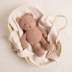 Roztomilý plyšový medvídek Mika od značky Bieco je hebký mazlík z nadýchané buklé látky v teplém čokoládovém odstínu. Je měkoučký, ideální na mazlení a objetí, skvěle poslouží i jako pohodlný polštářek. Díky volným ručkám a nožkám se dětem dobře drží a nepřekáží při spánku ani hraní. Vhodné od 0 měsíců, testováno dle EN 71 a nezávisle kontrolováno na škodlivé látky.