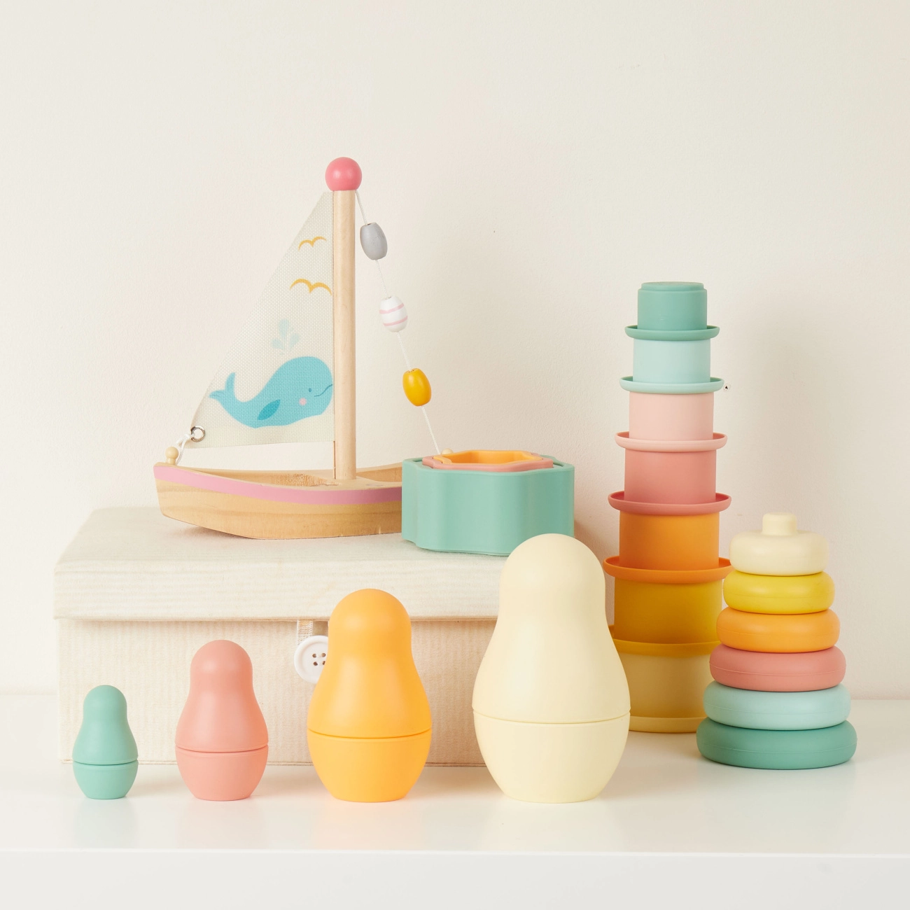 Objevte moderní pojetí klasické hračky: silikonová skládací matrjoška v designu Tropical Vibes podporuje jemnou motoriku, logické myšlení a kreativitu. Díky 100% silikonu je měkká, odolná proti rozbití a zcela bezpečná pro děti. Snadno se čistí a skvěle padne do malých dětských ručiček.