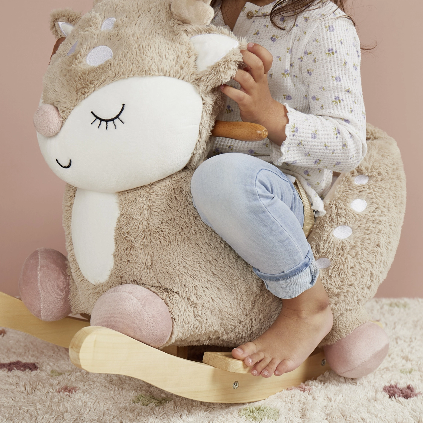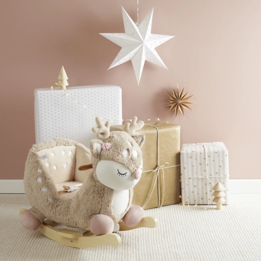 Roztomilý houpací koloušek Ella od značky Bieco potěší děti už od 9 měsíců. Má hebký plyšový povrch, měkké polstrované sedátko s bezpečnostním pásem a stabilní dřevěnou konstrukci se stupačkami a madly. Podporuje motoriku, rovnováhu a přirozený pohyb, zároveň je bezpečný díky ochraně proti převrácení a nízké výšce sedu.