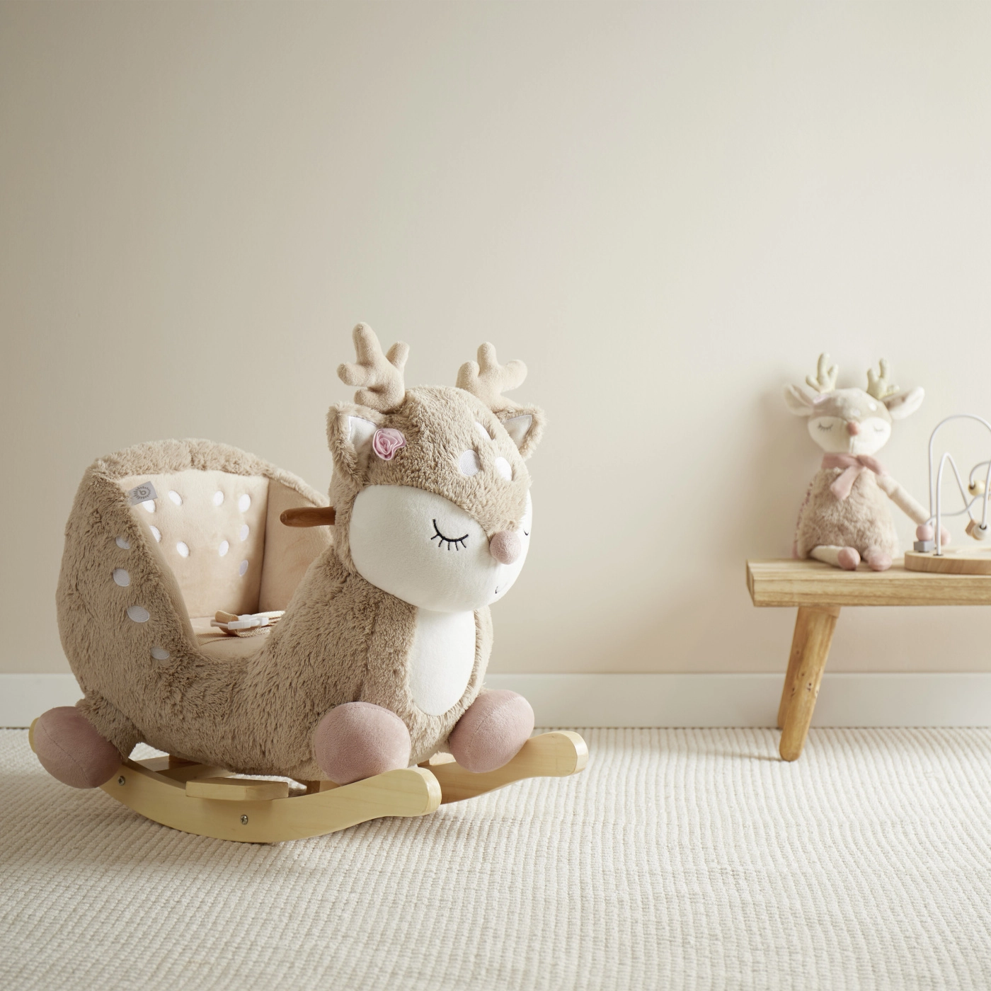 Jemný plyšový povrch s detaily jelínka Ella je příjemný na dotek a krásně zapadne do dětského pokojíčku.