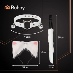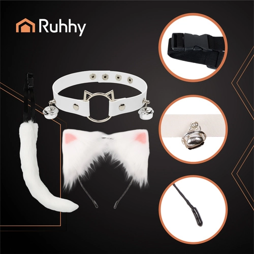 Stylový 3dílný set RUHHY v bílé barvě promění každý outfit v okamžiku. Obsahuje měkký ocas s tvarovatelným drátkem, čelenku s ušima a nastavitelný choker se zvonečky. Ideální na cosplay, focení, večírky i TikTok – je lehký, pohodlný a připravený k okamžitému nošení. Kompletní 3v1, příjemné umělé kožíškové provedení, nastavitelný choker i ocas a univerzální velikost pro různé postavy.