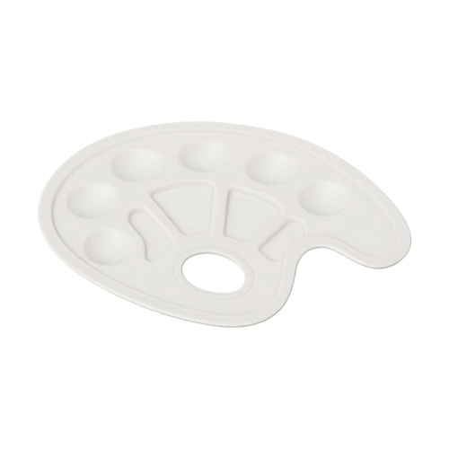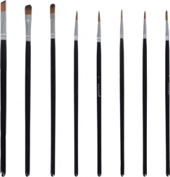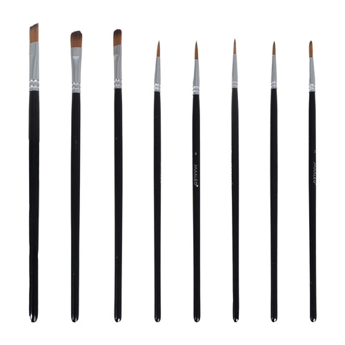 Sada 10 štětců (ploché i kulaté) a lehká plastová paleta s jamkami a otvorem na palec pro pohodlné míchání a detaily.