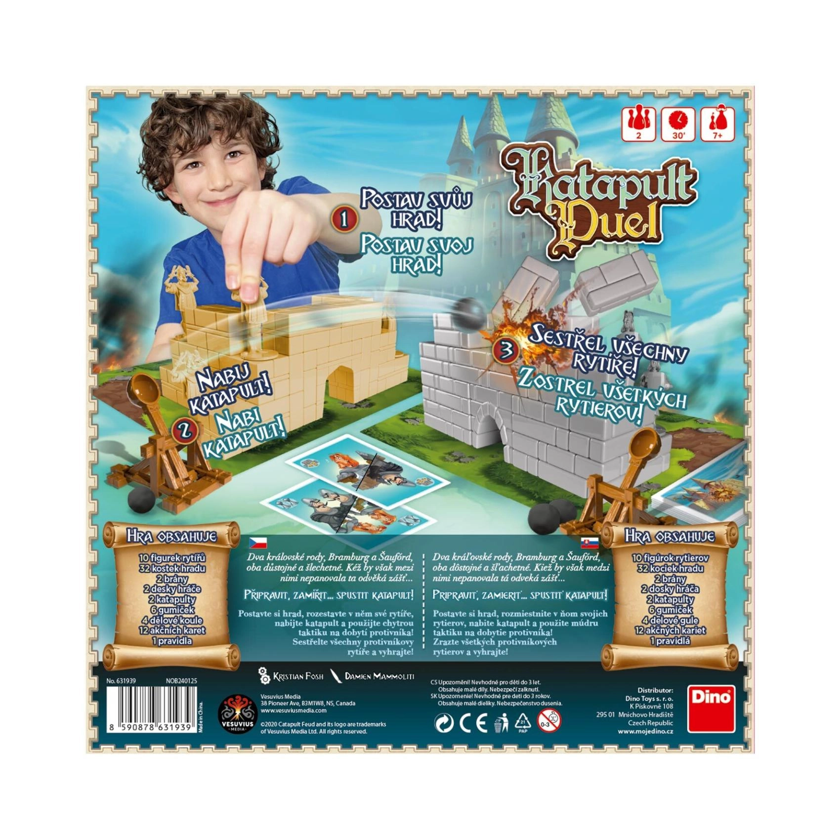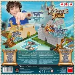 Katapult Duel je svižná duelová hra, ve které si postavíte vlastní hrad a chytře rozmístíte figurky. Poté přichází na řadu přesná muška a strategie – využijte karty pro speciální akce nebo se spolehněte na instinkt a začněte pálit. Vítězí ten, kdo jako první shodí soupeřovu poslední figurku.