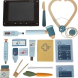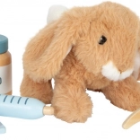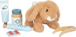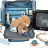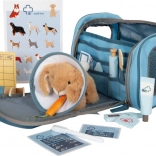 Praktická taška slouží jako přenosný box pro králíčka i organizér všech nástrojů. Díky přehledným kapsám a zipu je vše na svém místě, připravené na vyšetření. Sada je z kvalitních materiálů (plyš, dřevo, textil, papír, plast) a je navržena pro snadné uchopení dětskými rukami.
