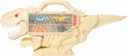 Probuďte fantazii a rychlost v jednom. Tento originální dinosaurus kombinuje úložný kufřík na malé hračky, parádní sjezdovou dráhu i akční střelbu. Otevírací boky ukrývají přehledné přihrádky na autíčka, ocas se zvedne a promění se v rampu – autíčko projede tělem dinosaura a vyjede ven pod hlavou. Na temeni je odklápěcí panel pro vložení rakety, kterou vystřelíte stiskem horního tlačítka.
