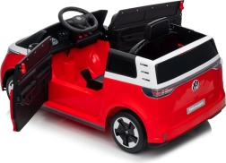 Stylové dětské elektrické autíčko inspirované legendární dodávkou VOLKSWAGEN ID. BUZZ v červenobílém provedení. Nabízí výkonné 2×45 W motory, baterii 12 V 10 Ah, pohodlné sedadlo z ekokůže s pásy a pěnová kola EVA pro tichou a komfortní jízdu. Rodiče ocení dálkové ovládání 2,4 GHz s bezpečnostním tlačítkem Stop, děti zase LED světla a audio panel s Bluetooth/USB/MP3.