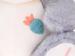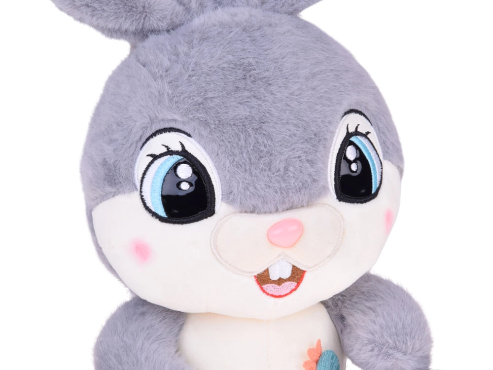Speciální ohebná ouška lze tvarovat do různých poloh, což přidává na zábavě a rozvíjí jemnou motoriku i kreativní fantazii. Roztomilý motiv mrkvičky na tělíčku podtrhuje králičí charakter hračky a dává jí jedinečný půvab.