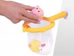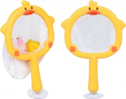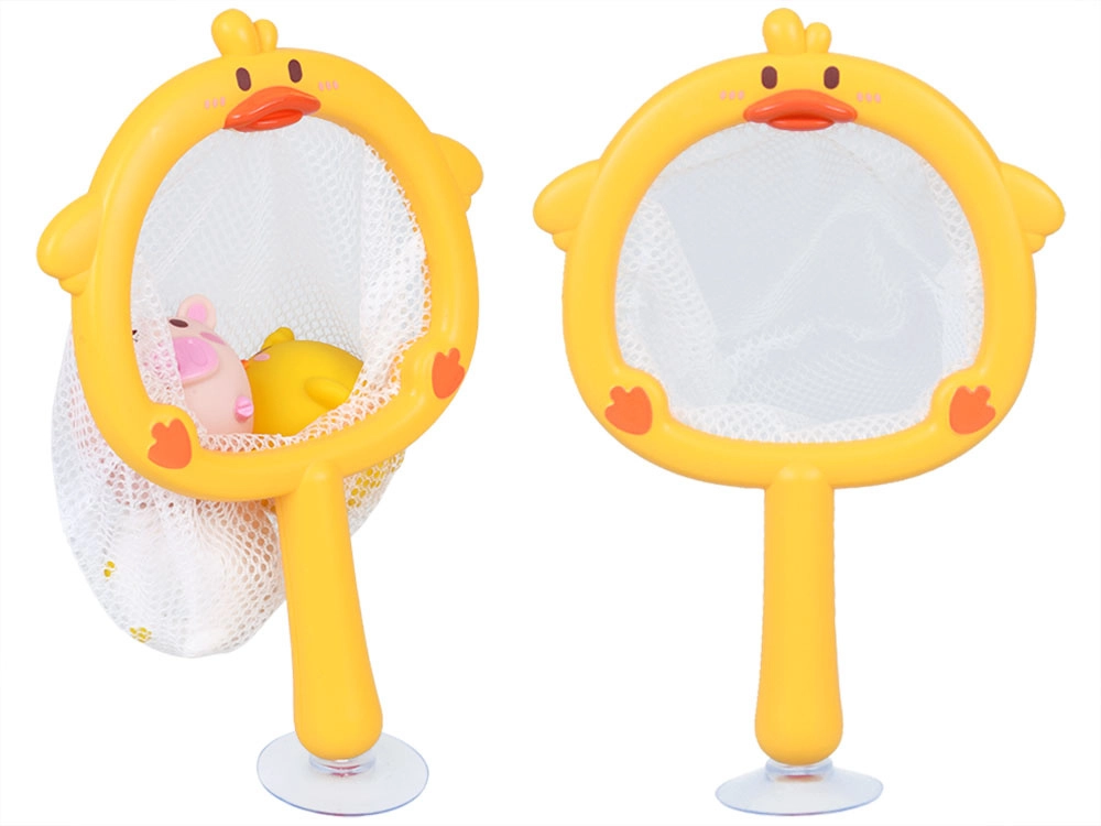Síťka ve tvaru kachničky s přísavkou se přichytí na hladké povrchy. Děti mohou zvířátka lovit, ukládat a nechat okapat – pořádek ve vaně je hračka.