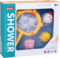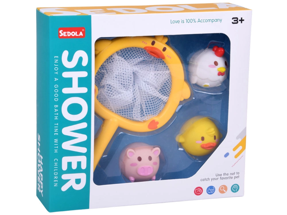 Zpříjemněte dětem čas ve vaně s hravým setem pro chytání zvířátek. Obsahuje sítěčko ve tvaru kachničky s přísavkou a tři měkoučká zvířátka – kachna, prasátko a slepička. Díky bezpečným zaobleným tvarům, materiálu bez ostrých hran a zvířátkům bez dírky je hraní hygienické a snadno se udržuje v čistotě.