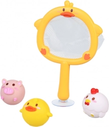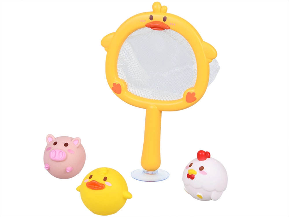 - Sítěčko s přísavkou + 3 gumová zvířátka (kachna, prasátko, slepička)