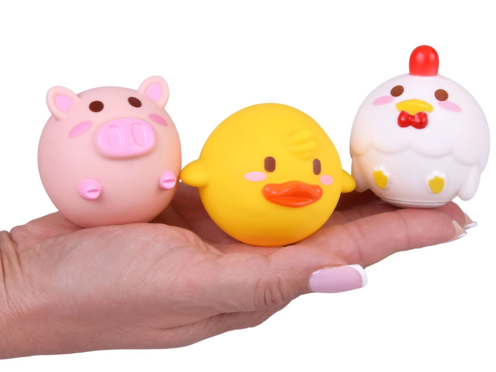 Kachna, prasátko a slepička mají kulatý tvar a nemají žádnou dírku, takže se uvnitř nedrží voda ani nečistoty. Snadná údržba a dlouhá životnost.