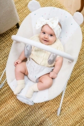 Lehátko MoMi Glossy je navržené pro každodenní pohodlí a uklidnění miminka. Integrovaný senzorický modul přináší 8 melodií s regulací hlasitosti a 3 úrovně vibrací, které pomáhají miminko jemně utišit. Měkké polstrování a ergonomický tvar poskytují oporu a komfort při odpočinku i hraní.